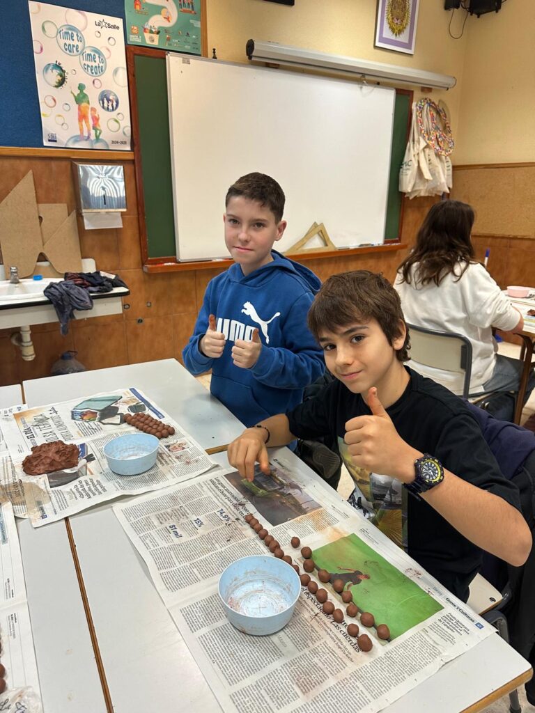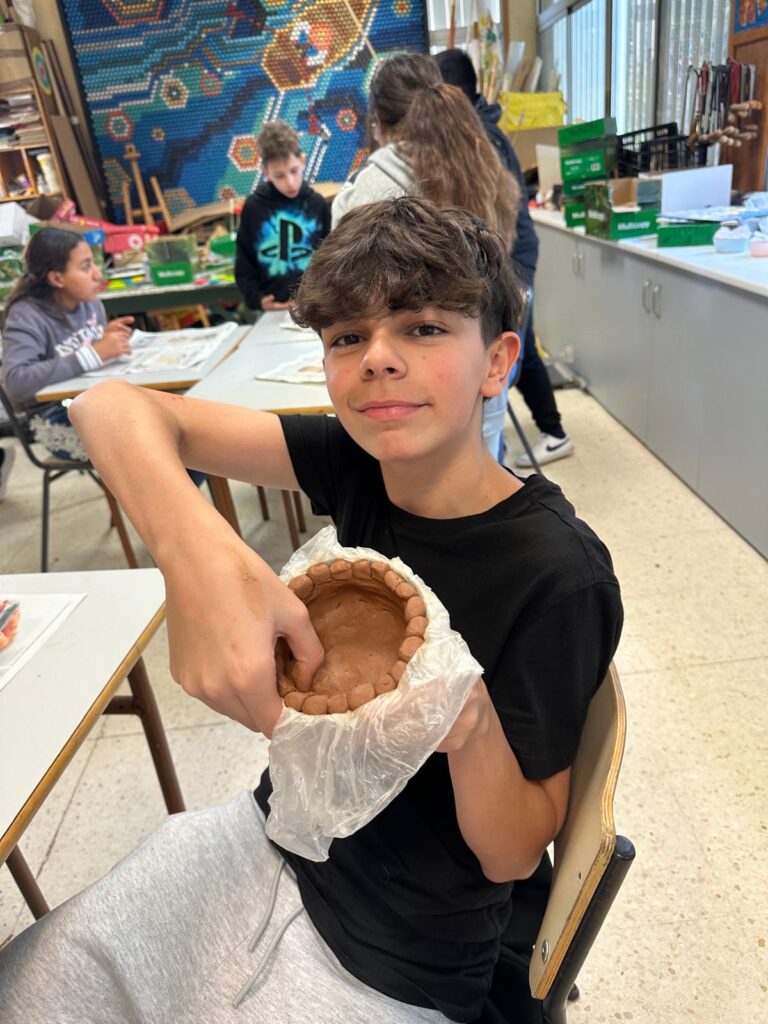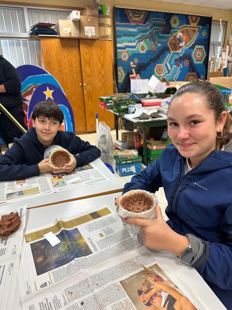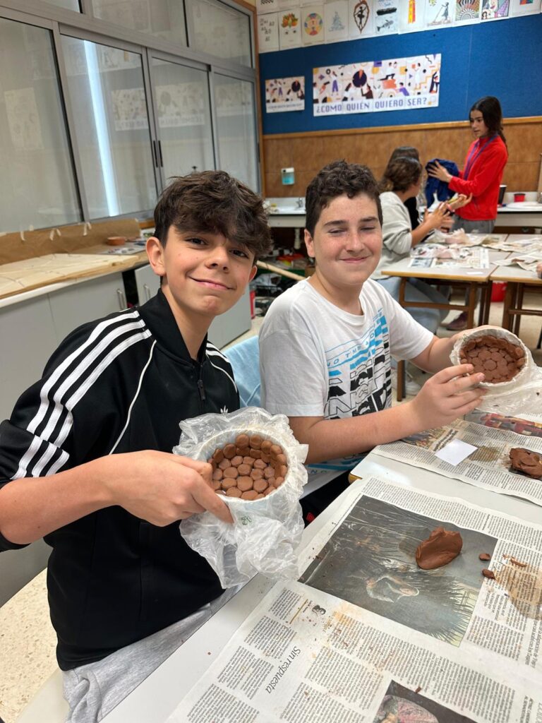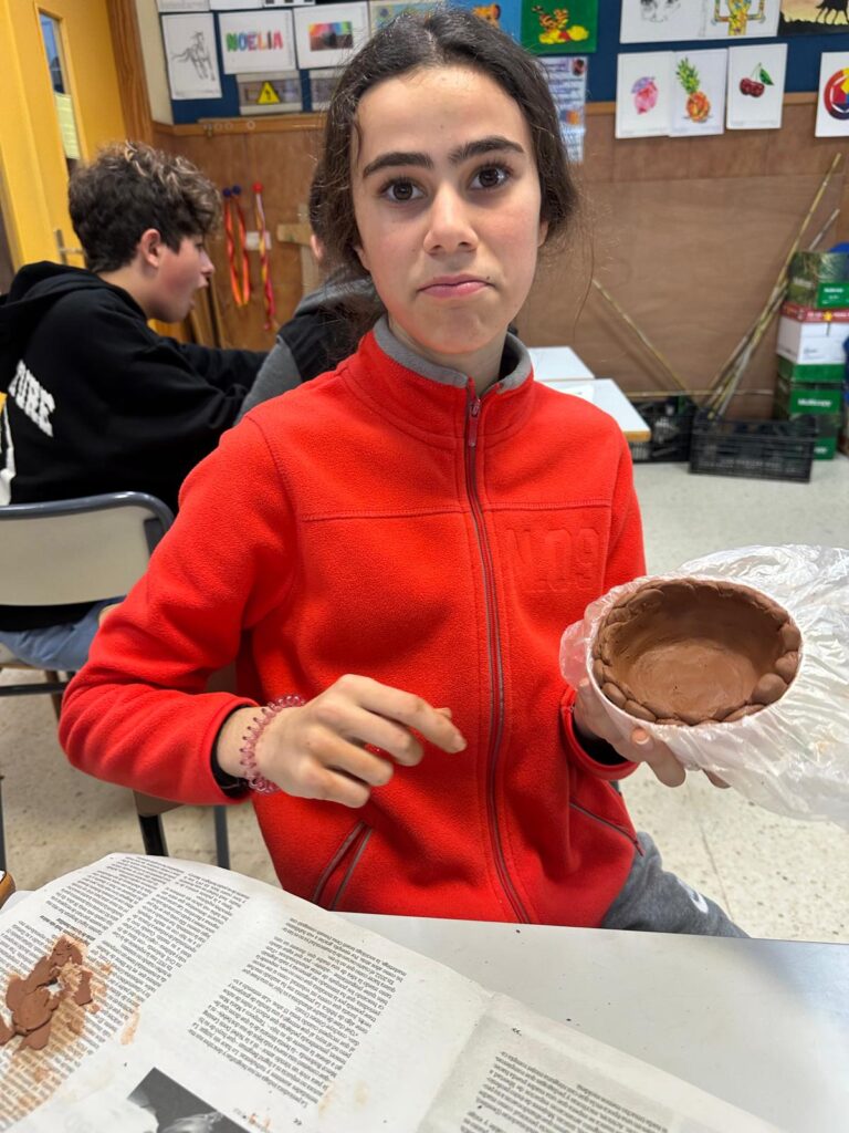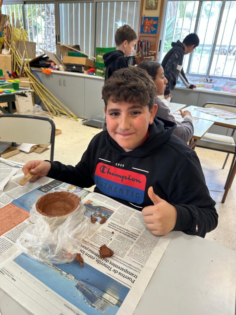 En estos días han conocido el entorno, han fabricado sus propios amuletos (Pintaderas Canarias), han fabricado sus utensilios, para vestirse, cazar, comer (vasija de barro), han intentado hacer fuego,…