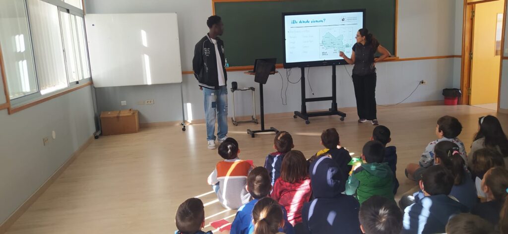 El pasado viernes, y a modo de cierre del Proyecto El Viaje, nuestro alumnado de Tercero de Primaria recibió una interesantísima charla a cargo de Lamine, un migrante procedente de Gambia, y Laura Viciana Estévez, auxiliar técnica educativa de la Asociación Mundo Nuevo, con el fin de crear conciencia sobre la realidad de las personas migrantes que abandonan sus países de orígenes en busca de mejores oportunidades