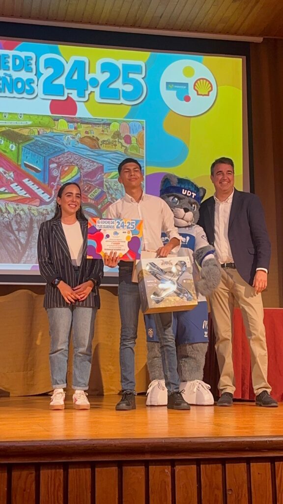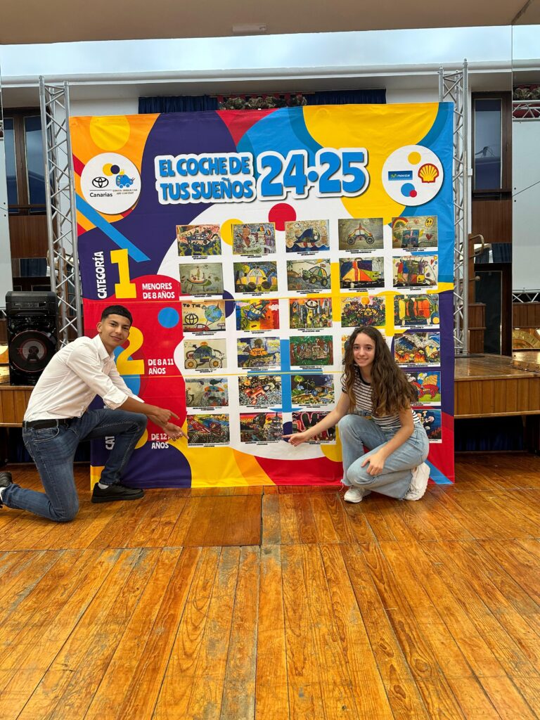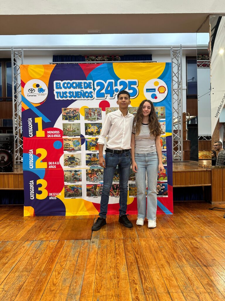 Los alumnos Emma y Adrián reciben el Primer y Segundo Premio del Concurso Toyota “El Coche de tus Sueños” Agradecidos @toyotacanarias Agradecidos por promover este maravilloso concurso y Felicidades a Mariquita y Tontón de «Contando Ando» por una actuación en la que pequeños y no tan pequeños no paramos de reír.