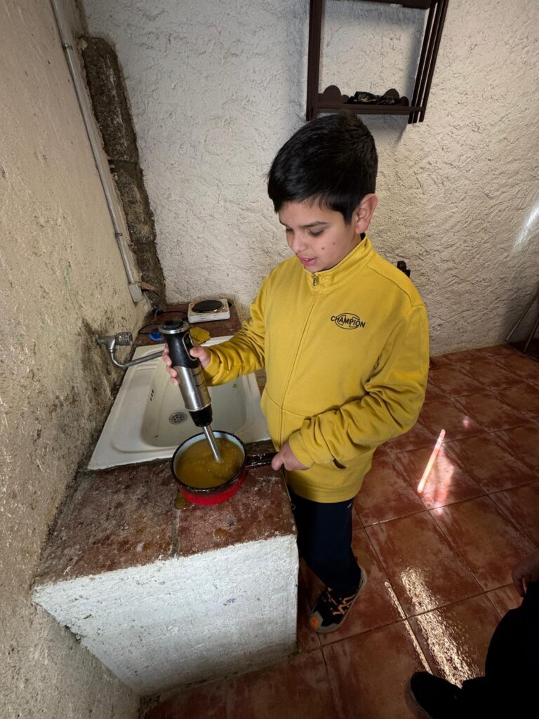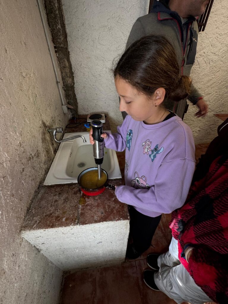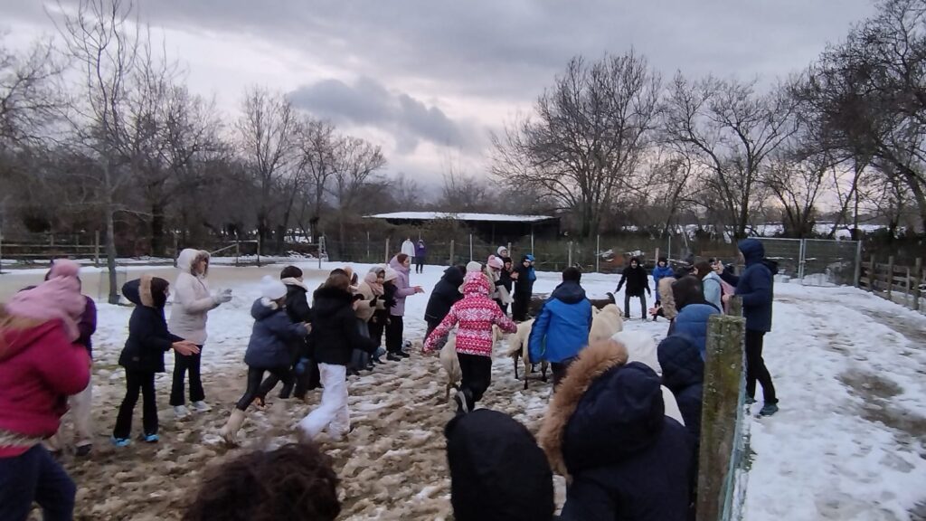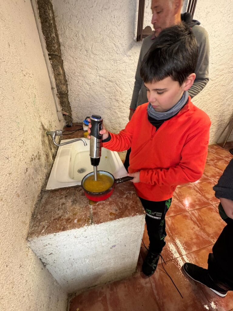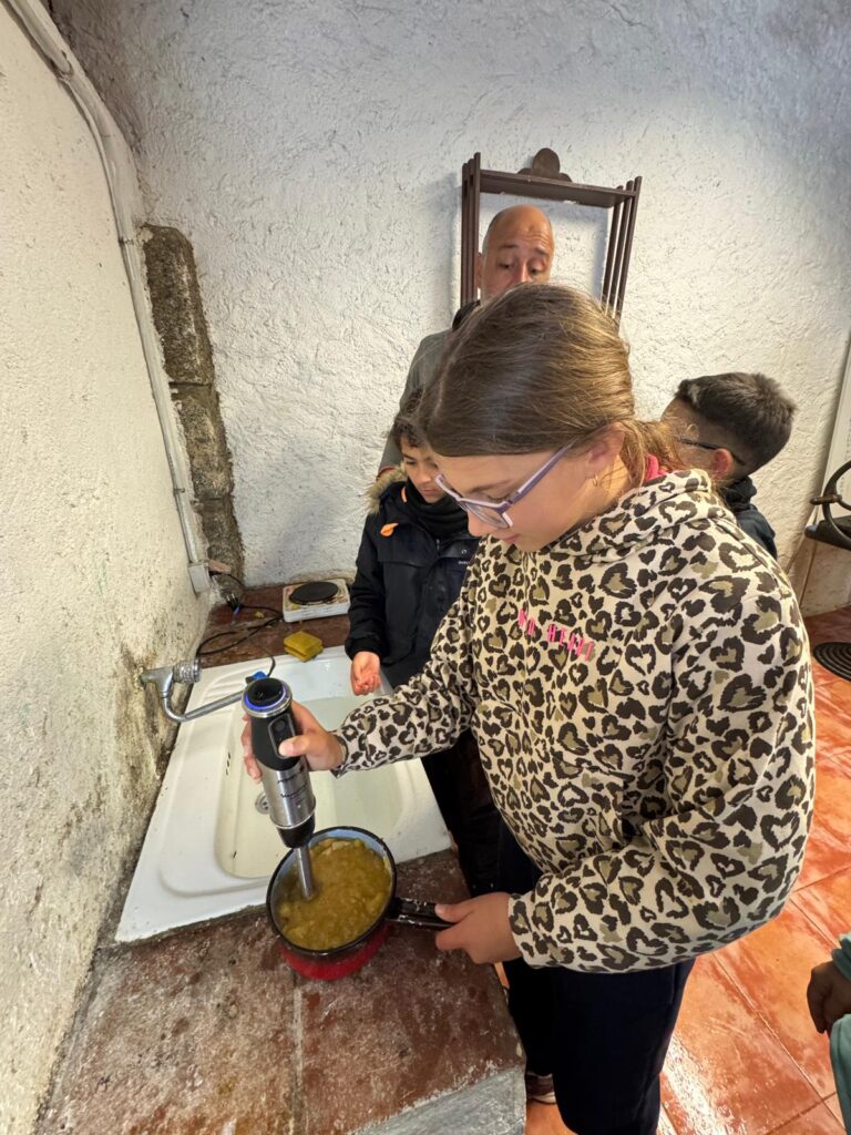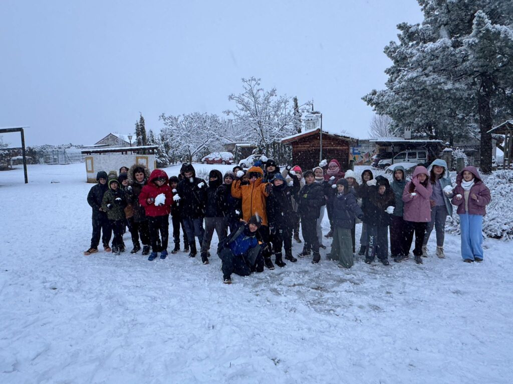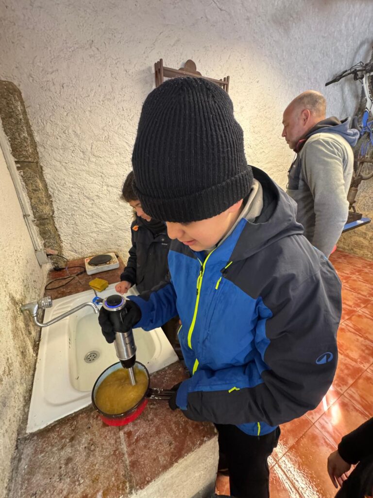 Nuestra expedición vivió hoy un día que, a buen seguro, no olvidarán jamás en la vida. Y es que al despertarnos encontramos todo Valdemorillo teñido de blanco por una intensa nevada durante la noche. Tras el desayuno,  y como no podía ser de otra forma, jugamos un rato con la nieve y después hicimos un taller de elaboración de mermelada de manzana.