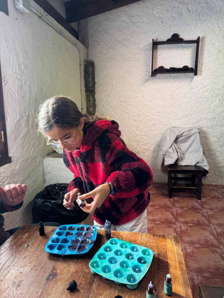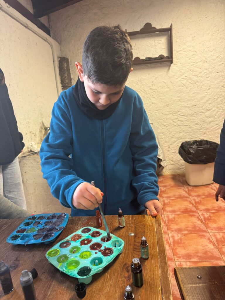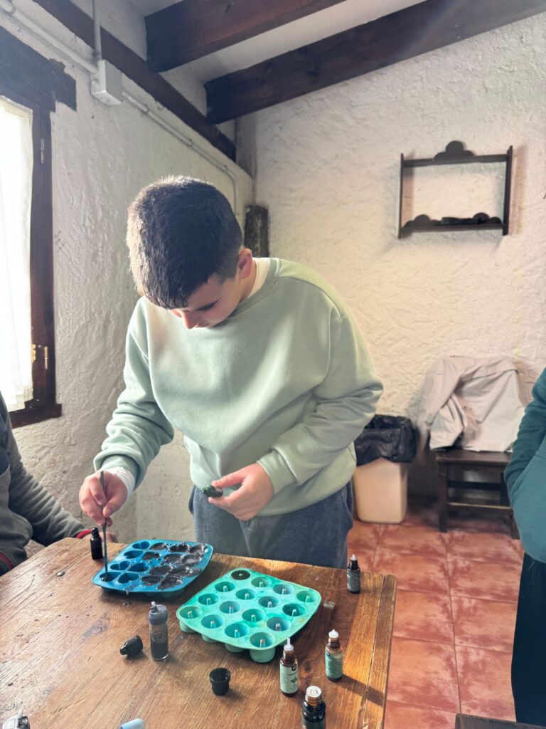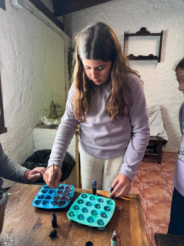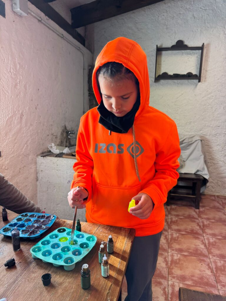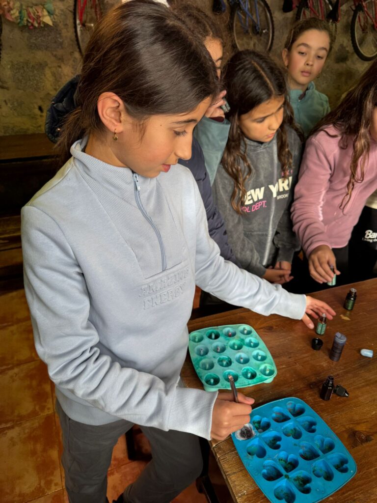 Ya por la tarde elaboramos nuestros propios jabones y visitamos otros animales de la granja que no habíamos podido ver en la jornada de ayer.