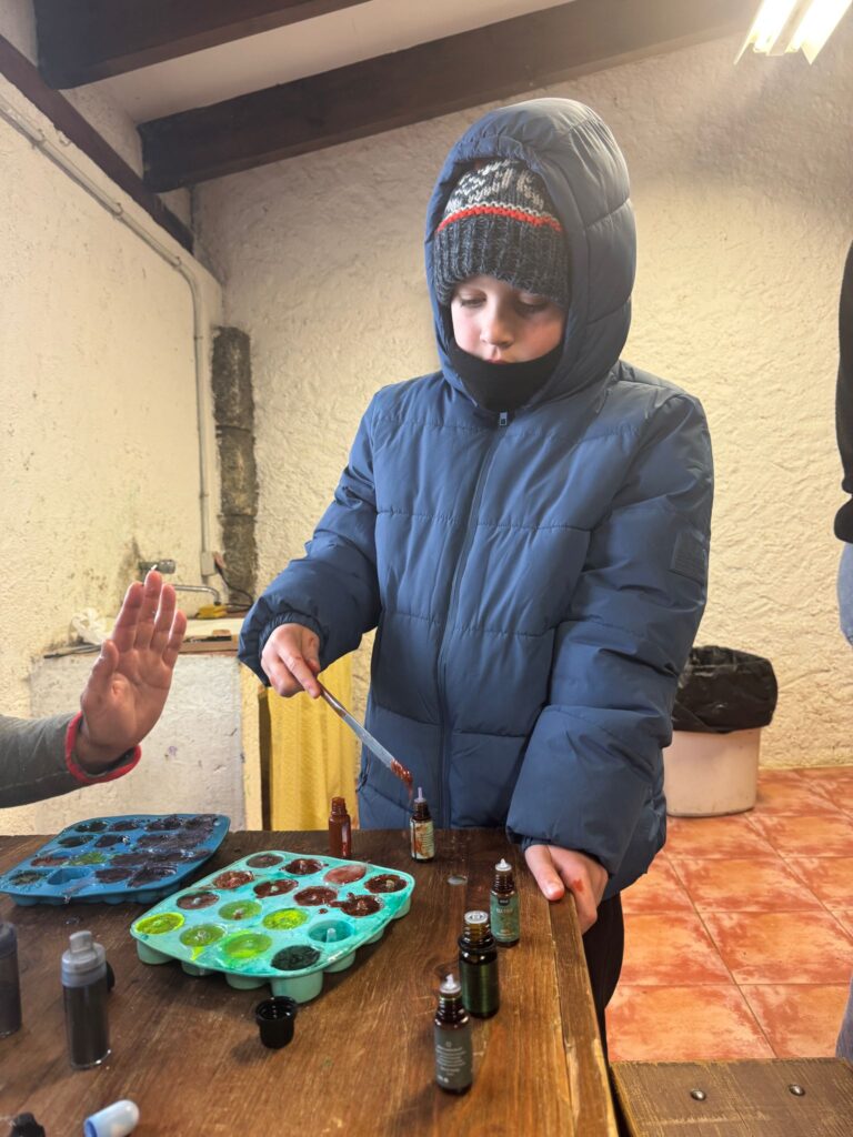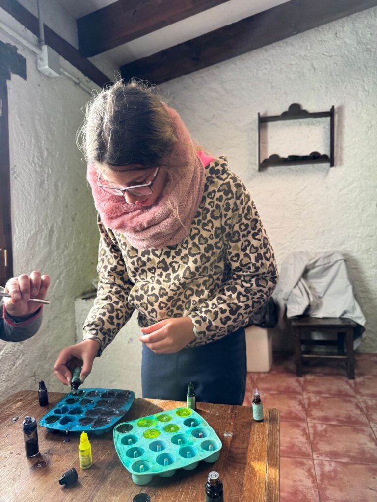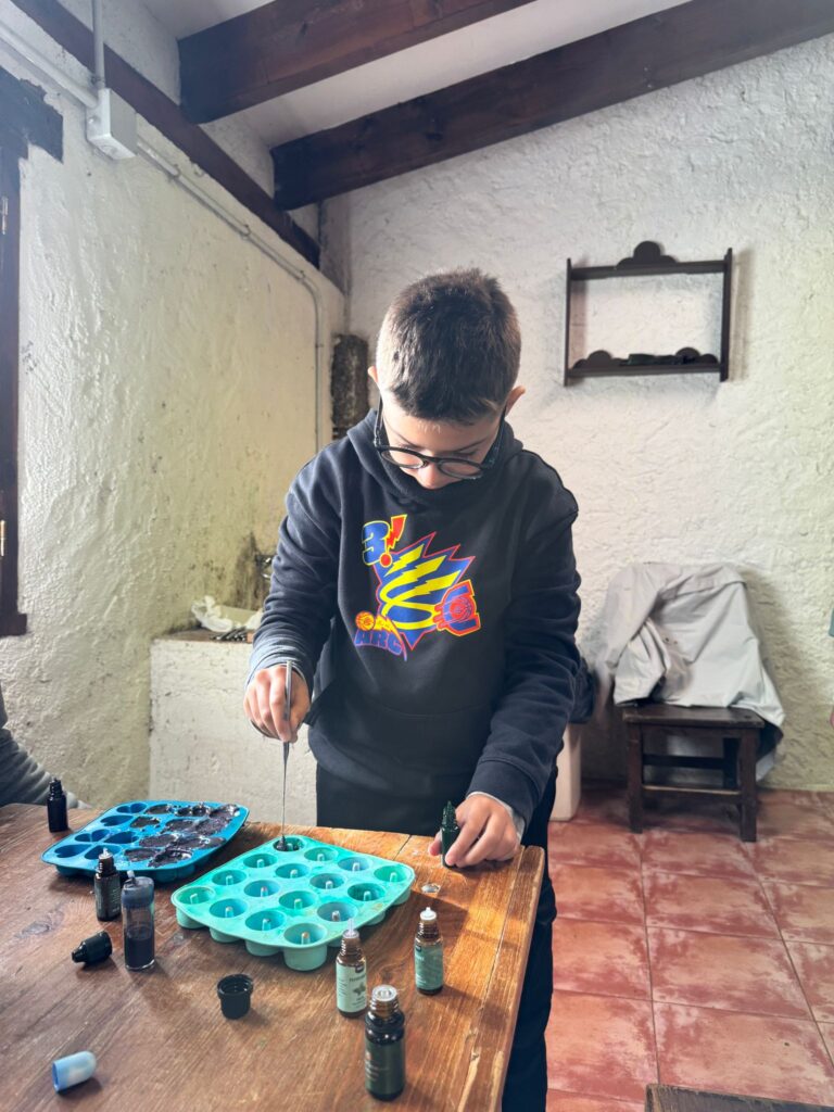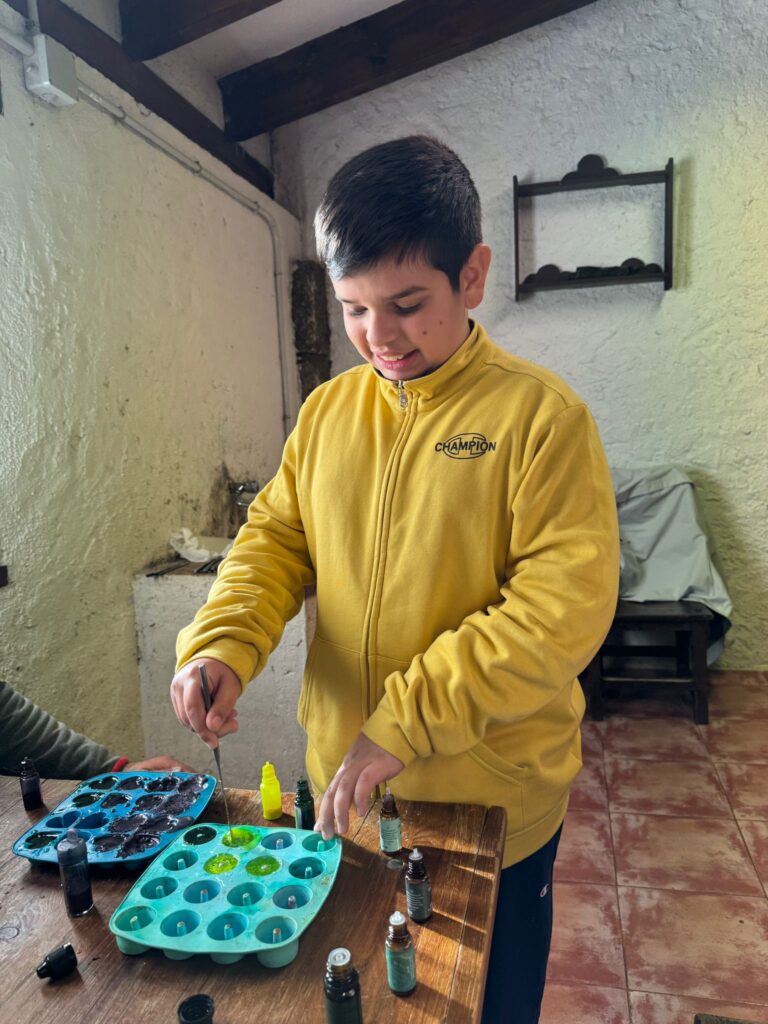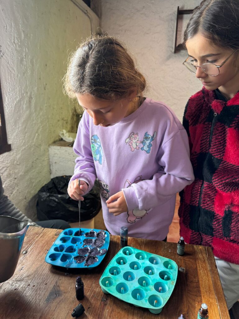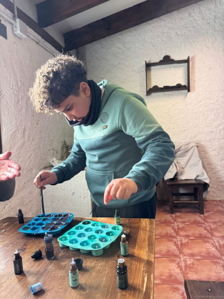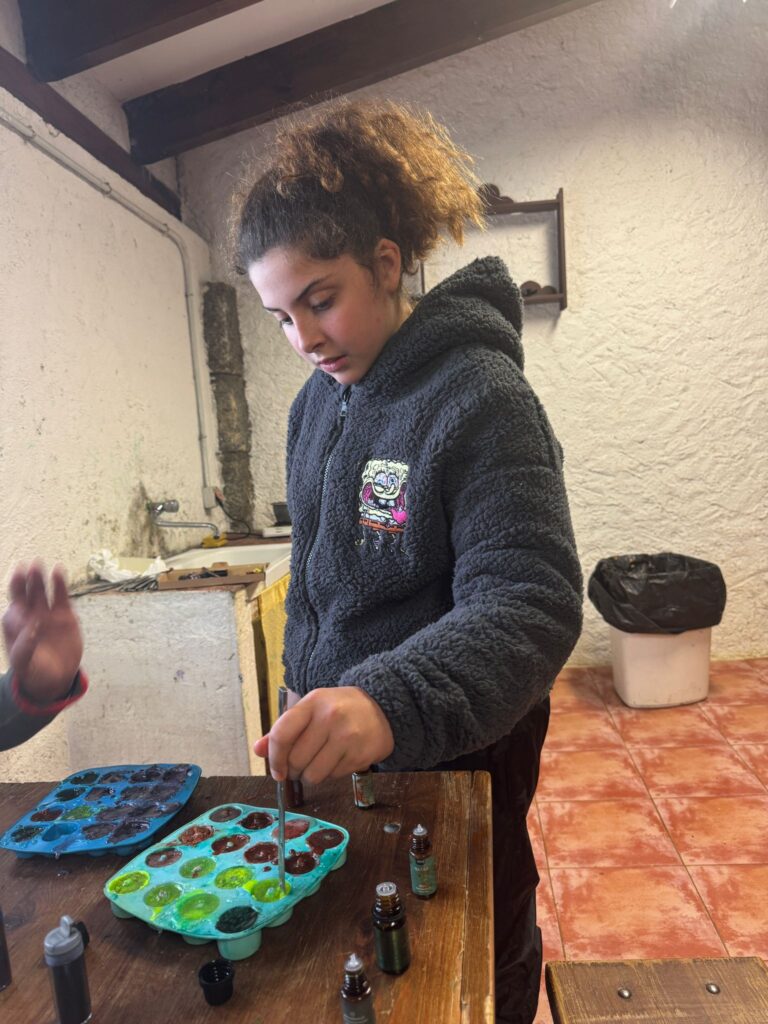 Ya por la tarde elaboramos nuestros propios jabones y visitamos otros animales de la granja que no habíamos podido ver en la jornada de ayer.