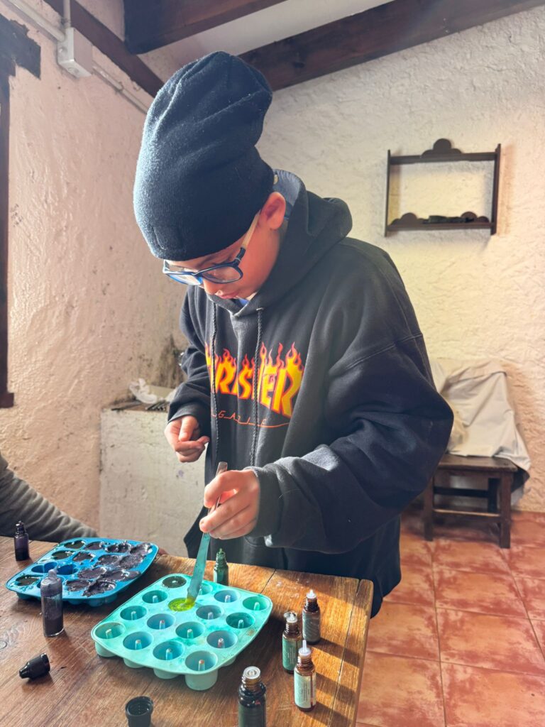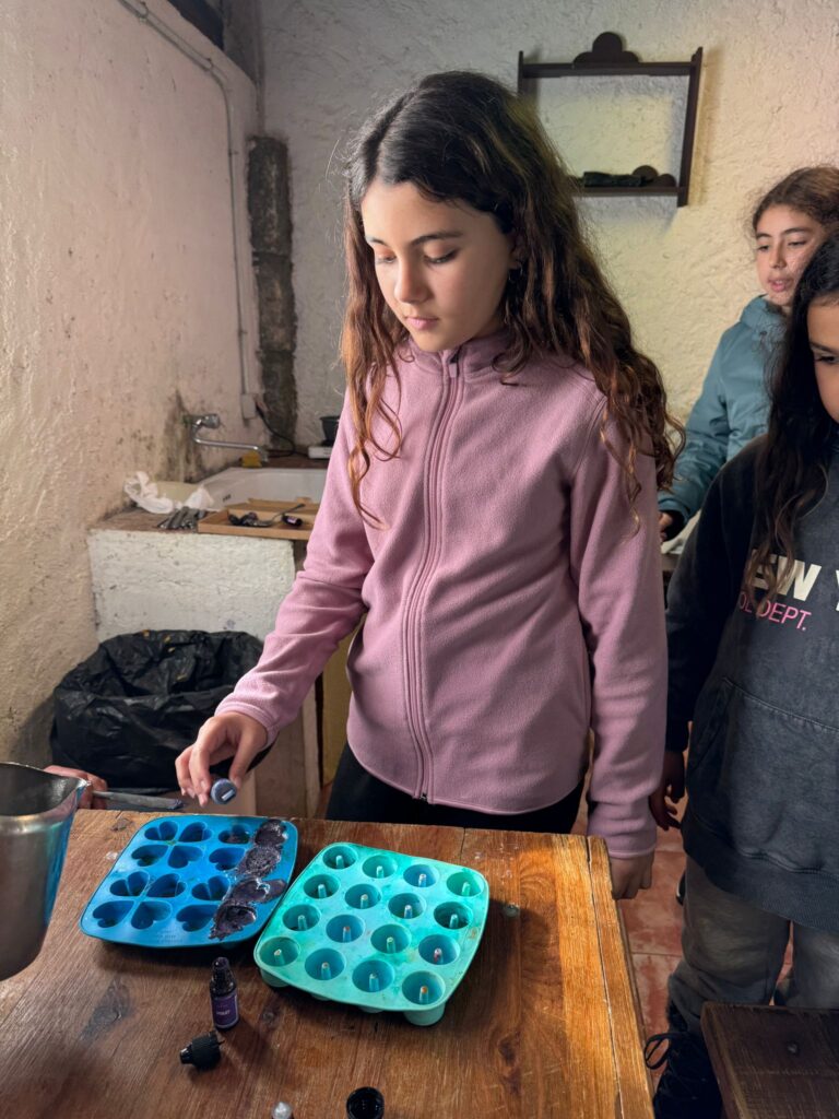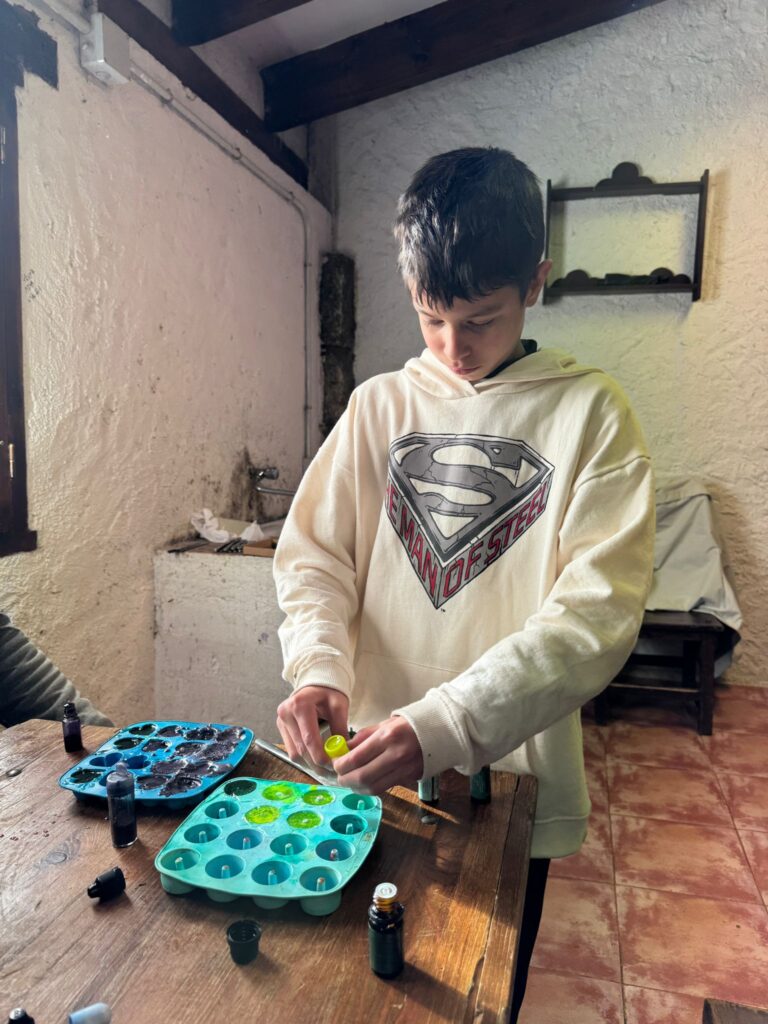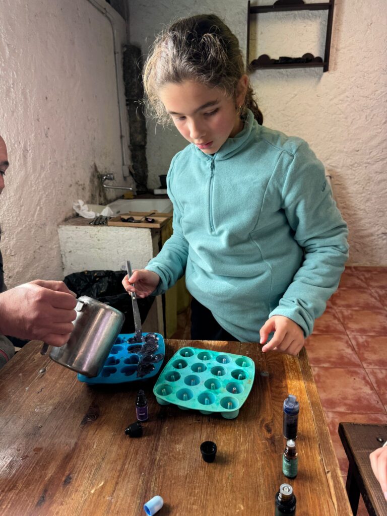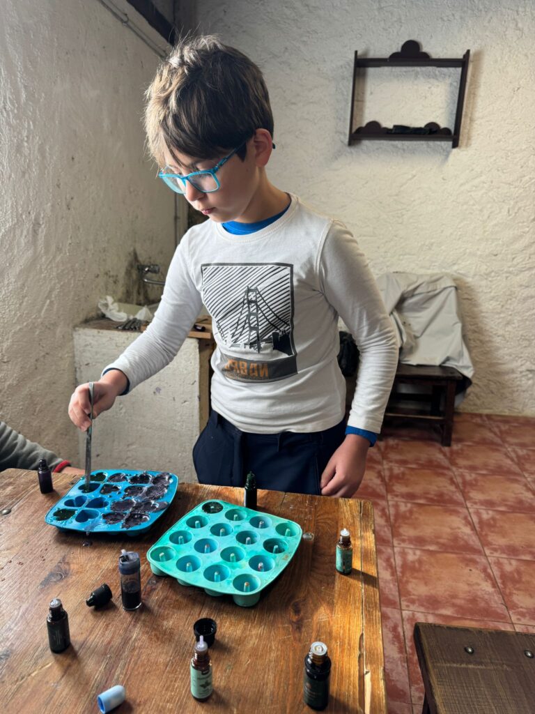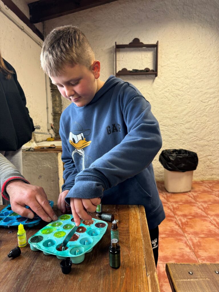 Ya por la tarde elaboramos nuestros propios jabones y visitamos otros animales de la granja que no habíamos podido ver en la jornada de ayer.