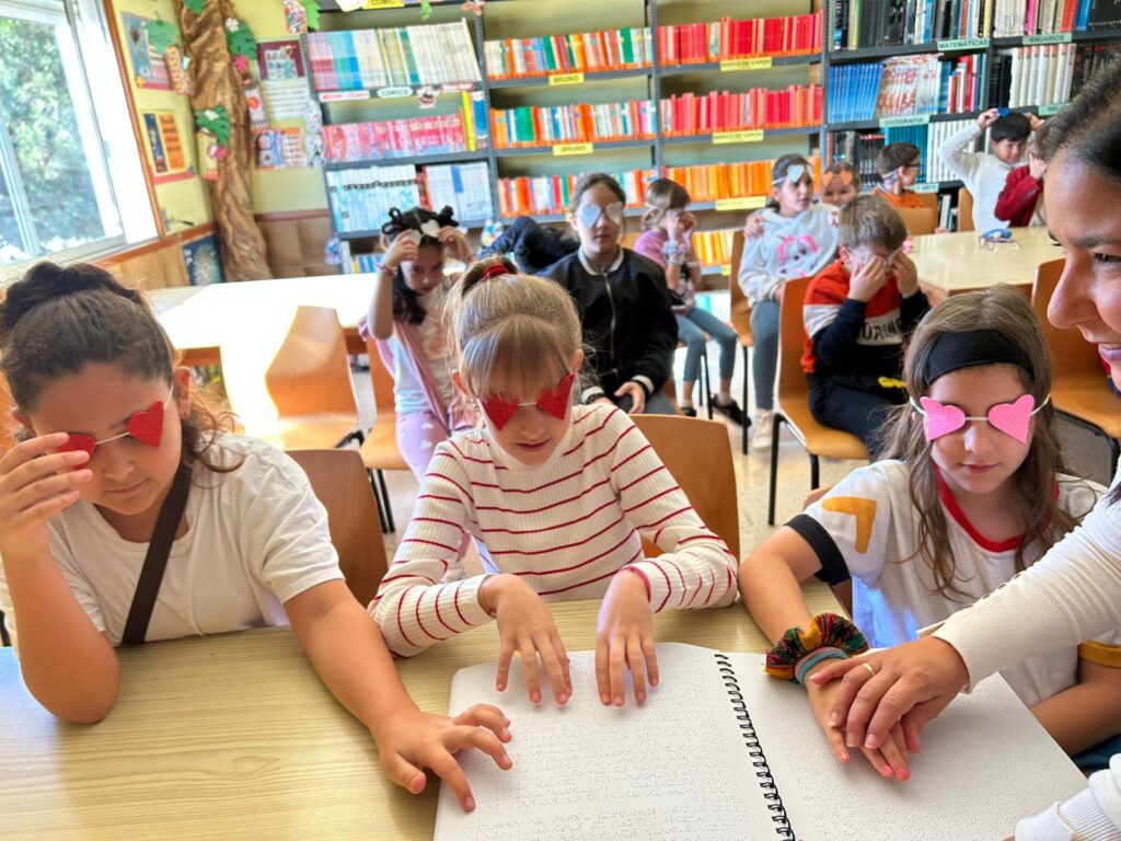 Esta mañana el alumnado de 3º y 4º de Primaria han participado en una charla muy especial sobre el alfabeto Braille y la lengua de signos, dos formas de comunicación esenciales para las personas con diversidad funcional visual y auditiva. A través de actividades interactivas realizadas por Irene, madre del colegio, el alumnado aprendió cómo se representa cada letra en Braille y practicó algunas palabras en lengua de signos. Además, reflexionaron sobre la importancia de la inclusión y la accesibilidad en la comunicación cotidiana.