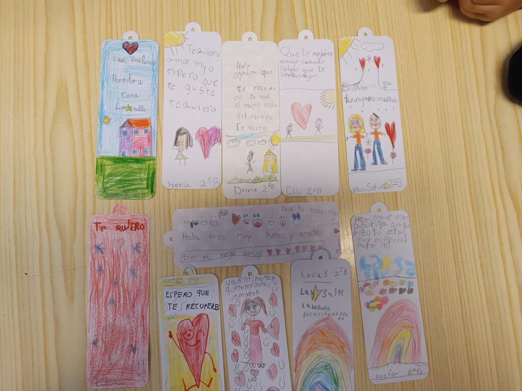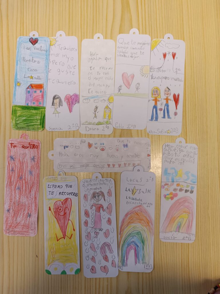 El alumnado de 1º y 2º de Primaria realizó en la tarde de ayer marcapáginas solidarios donde, a través de dibujos y palabras positivas, desearon mucha suerte a niños y niñas que en estos momentos están atravesando situaciones difíciles relacionadas con la salud. Pronto estos peques recibirán todos los marcapáginas.