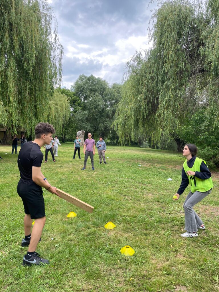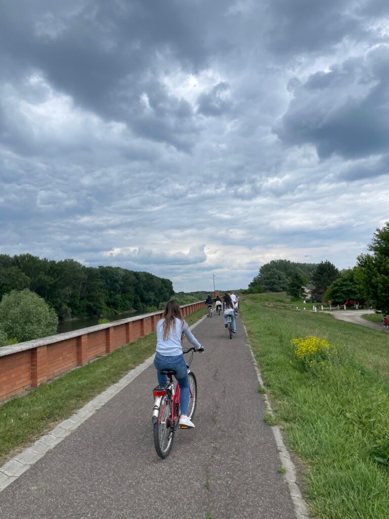Después de comer cogimos las bicis y paseamos a la vera del río Tisza. Hicimos una parada en un espacio abierto para jugar Cricket y voleibol. Después volvimos con las bicis al colegio y fin del día 1