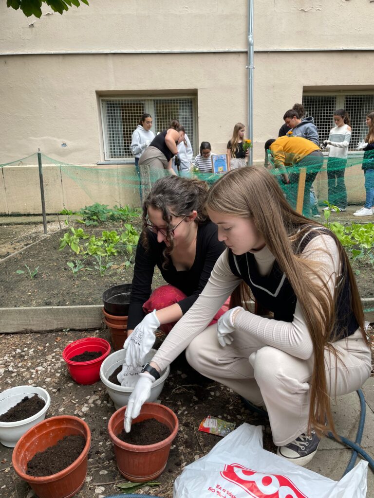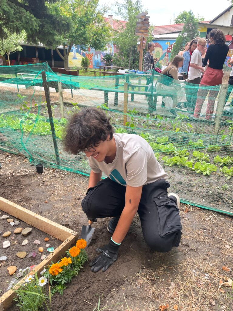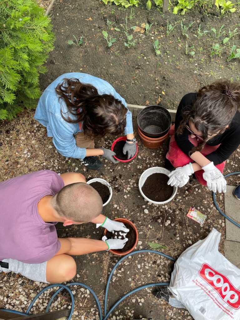Seguidamente nos pusimos manos a la obra para plantar diferentes flores de la temporada en el huerto escolar.