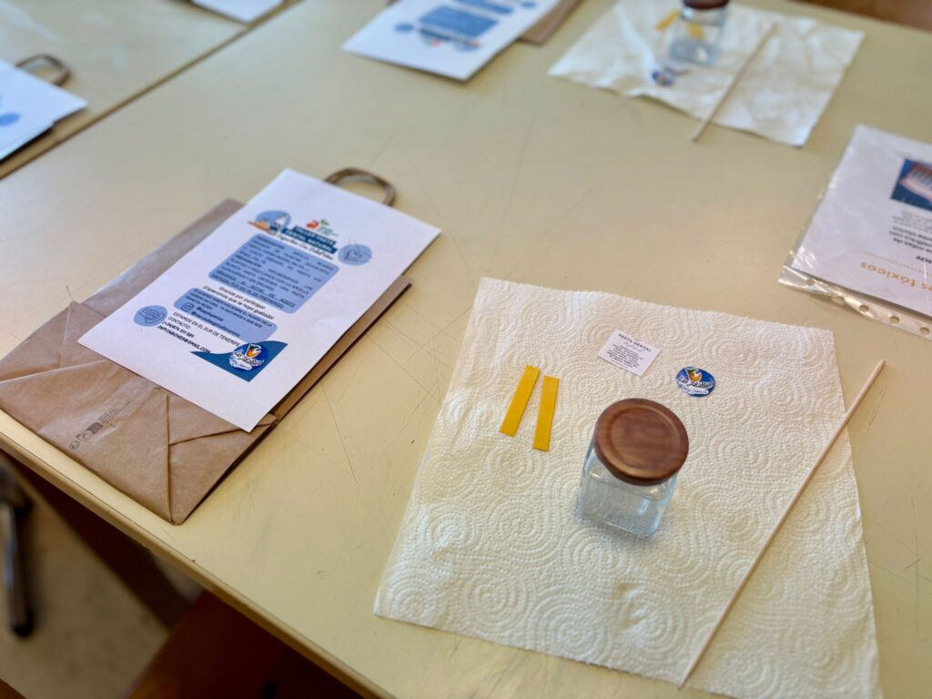 La expedición de alumnos procedentes de la Bretaña Francesa inició su semana en el cole con un día muy variado. Comenzamos realizando una visita guiada a los franceses, luego todos juntos pudimos disfrutar de la celebración colegial. Continuamos con un taller de realización de pasta dental impartido por María y Cristina, a quienes agradecemos el hecho de que fomenten este tipo de talleres y terminamos el día en clase.