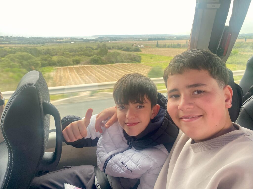 Salut ! Hoy desde muy tempranito hemos partido dirección Montpellier. A pesar del madrugón, las ganas y la ilusión no nos han dejado pegar ojo en el avión. Una vez aterrizados en Barcelona hemos cogido la guagua dirección a nuestro destino. El cansancio no ha podido con nosotros y hemos compartido canciones, juegos y risas durante el trayecto.